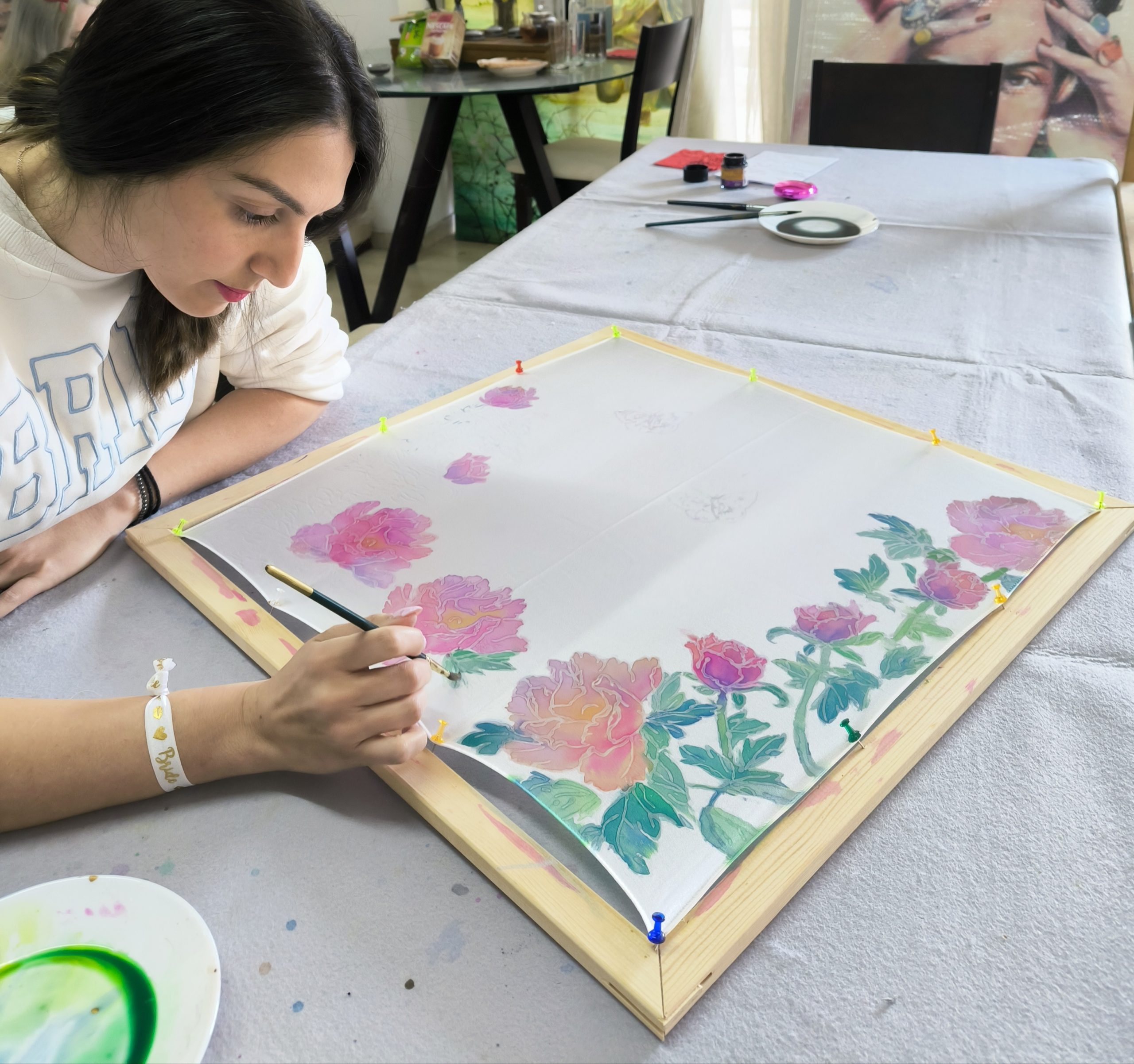 🎨 Create your own unique hand-painted silk scarf! In this workshop, you will explore the art of silk painting, learning how to combine colors, patterns, and techniques to design a wearable artwork.