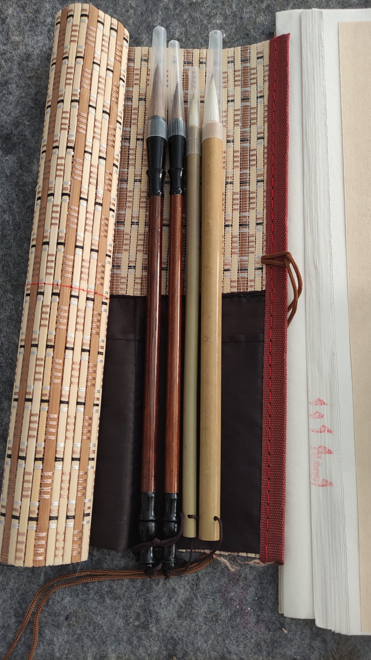 περιλαμβάνονται τέσσερις βούρτσες, μελάνι 100g, χαρτί ρυζιού 40 φύλλα